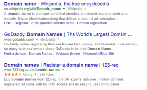 For the keyword domain name, these are the top results and you could see that their domain name doesn’t contain that keyword.